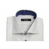 - Biela pánska košeľa na manžetové gombíky. Košeľa je oživená modrou luxusnou vzorovanou látkou na vnútornej strane goliera, gombíkovej lézie a vnútornej strane manžiet. Košeľa je šitá zo 100% bavlny. Košeľu ponúkame vo veľkosti 41.
