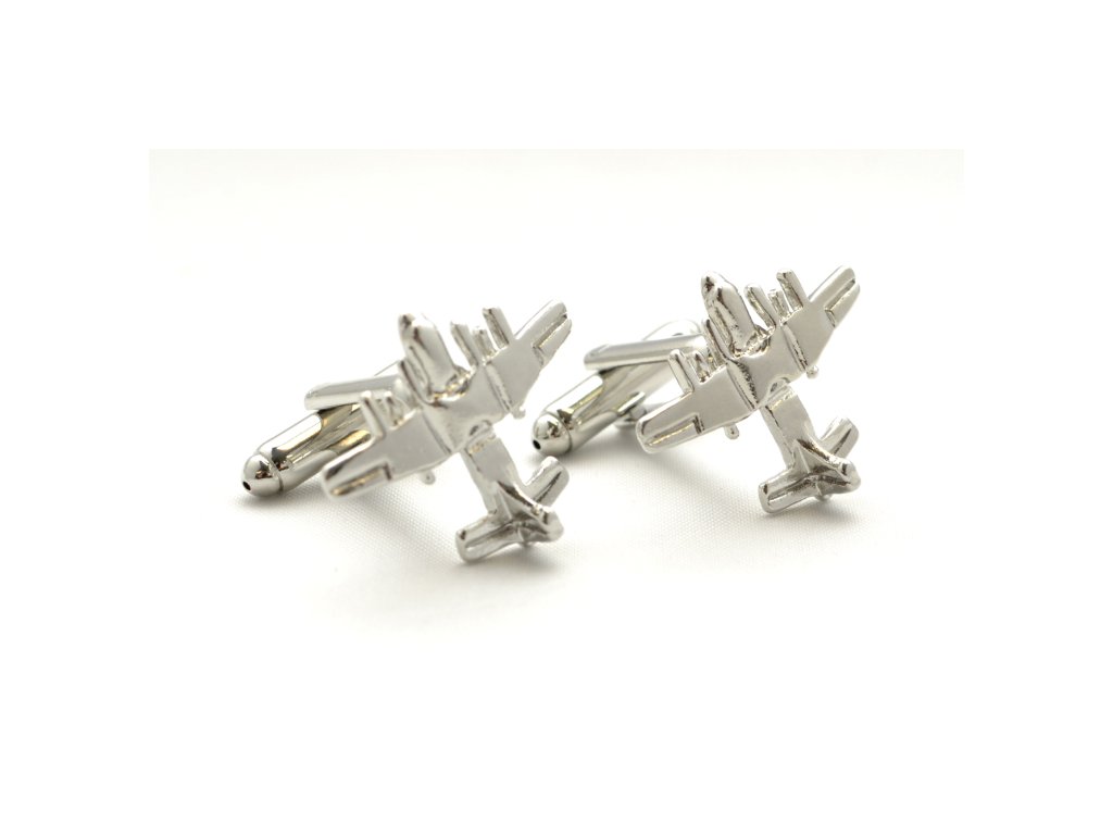 Manžetové gombíky v tvare lietadla.