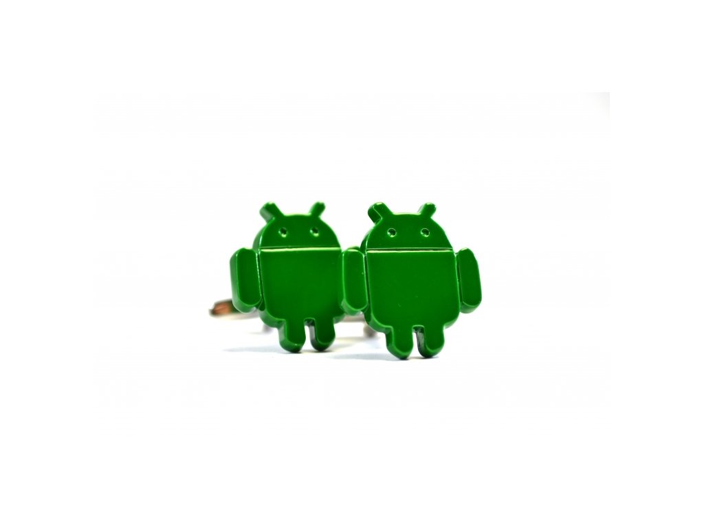 Manžetové gombíky v znaku robota Androida v zelenom prevedení.