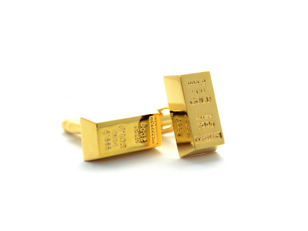 Manžetové gombíky v tvare zlatej tehly.