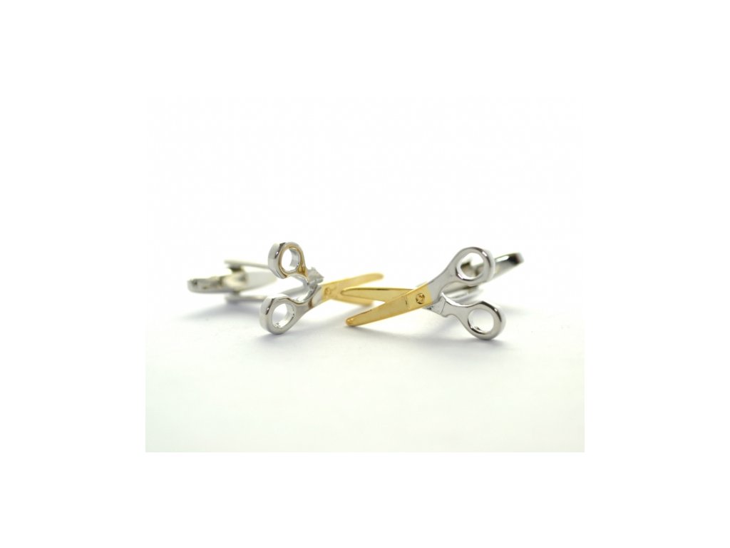Manžetové gombíky v tvare nožníc v strieborno-zlatom prevedení.